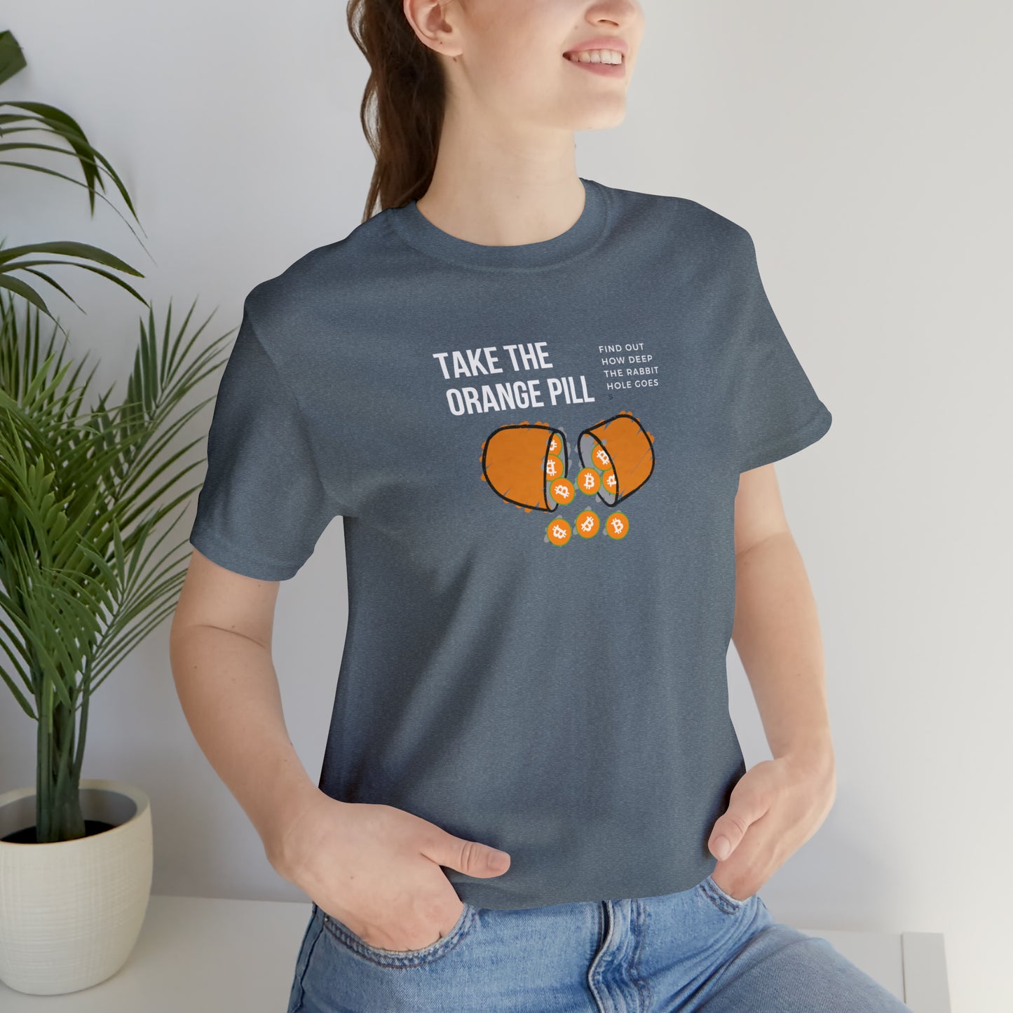 Anyways....this classic unisex jersey short sleeve tee fits like a well-loved favorite. Soft cotton and the evolving orange pill movement will make you fall in love with it over and over again. These t-shirts have-ribbed knit collars to bolster shaping. The shoulders have taping for better fit over time. Dual side seams hold the garment's shape for longer.