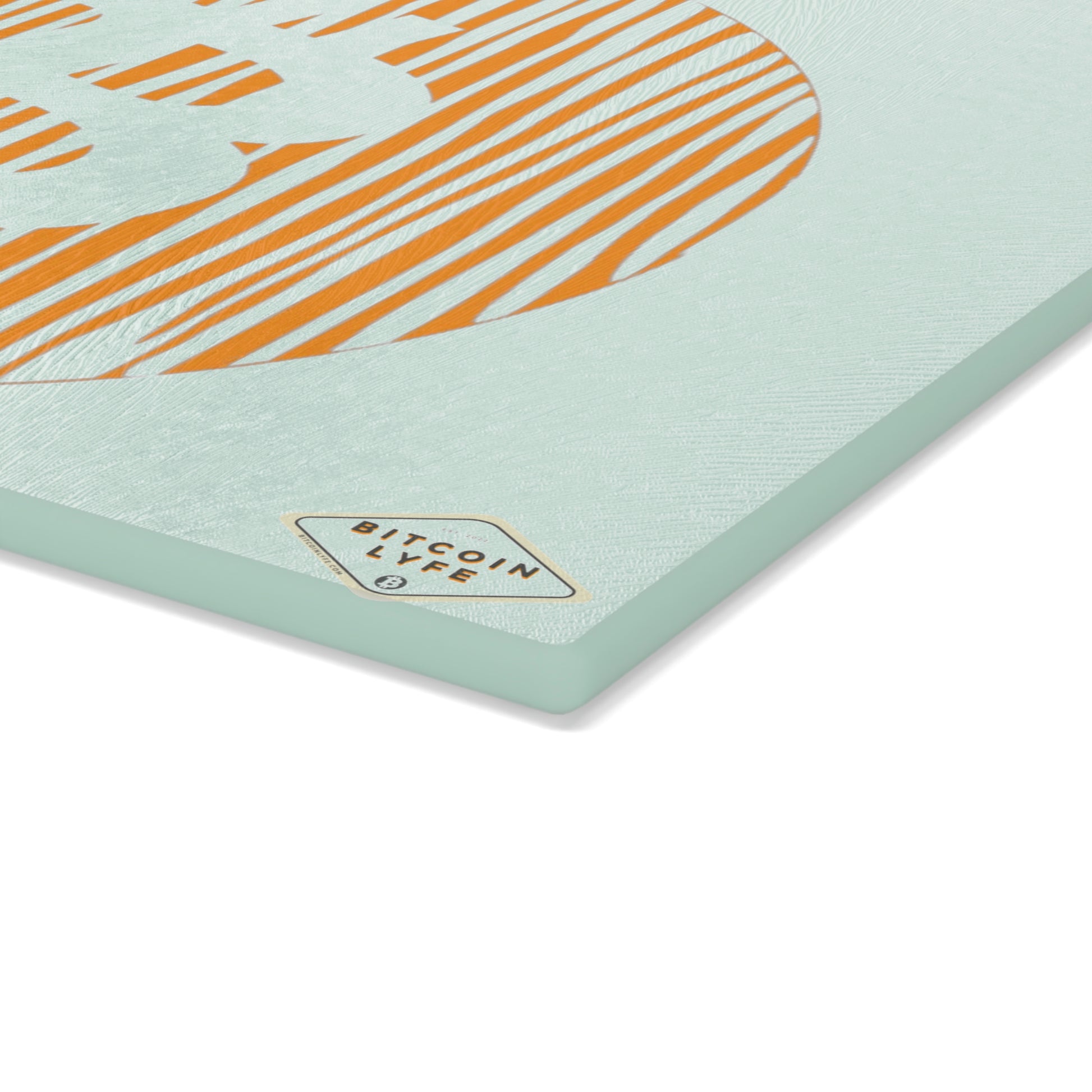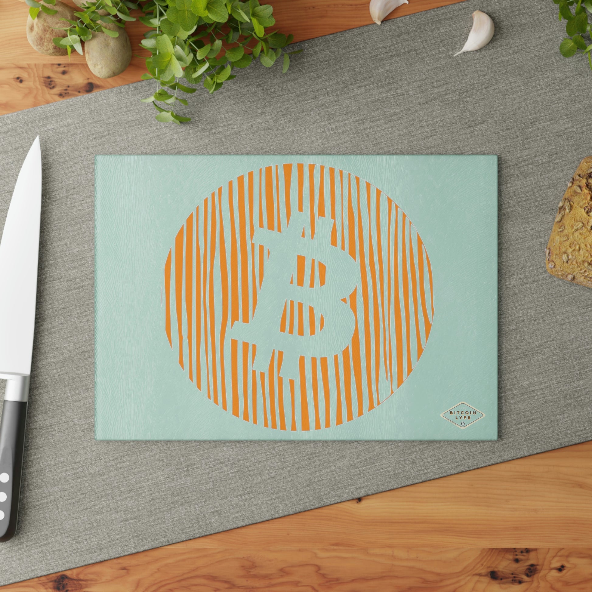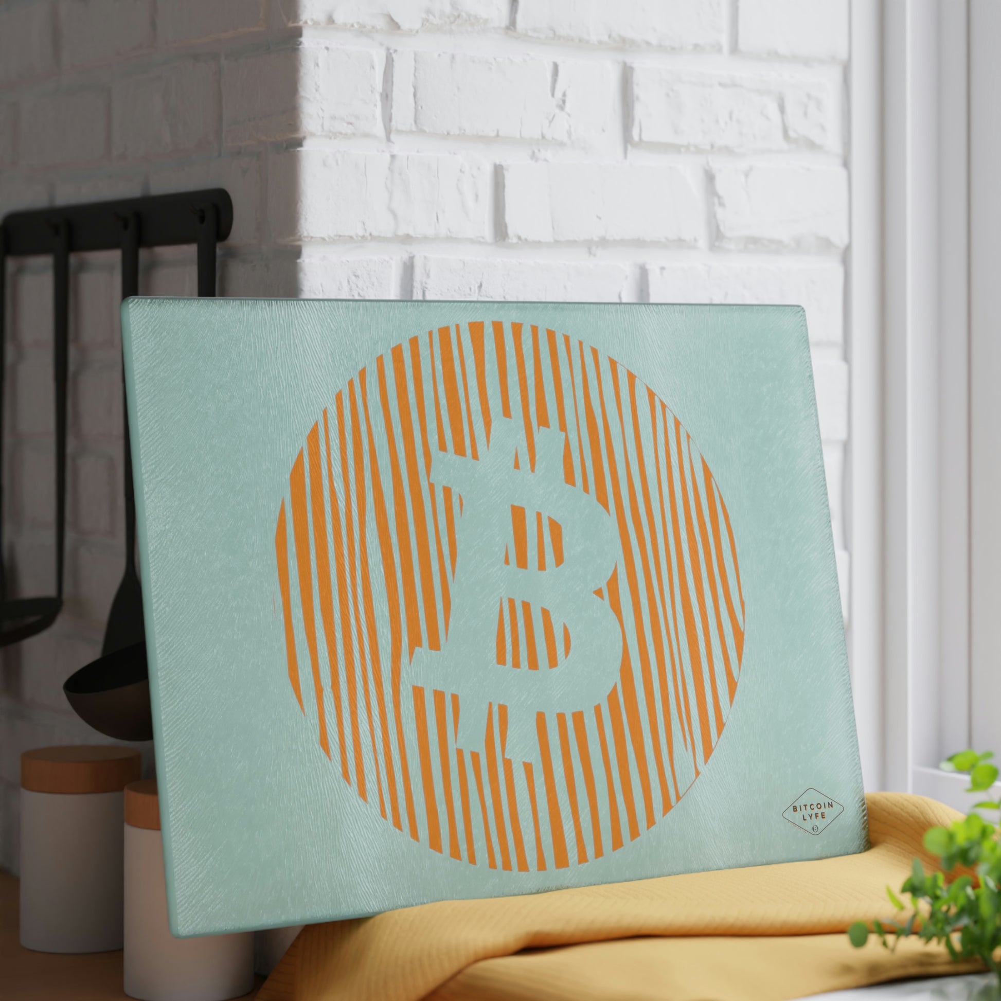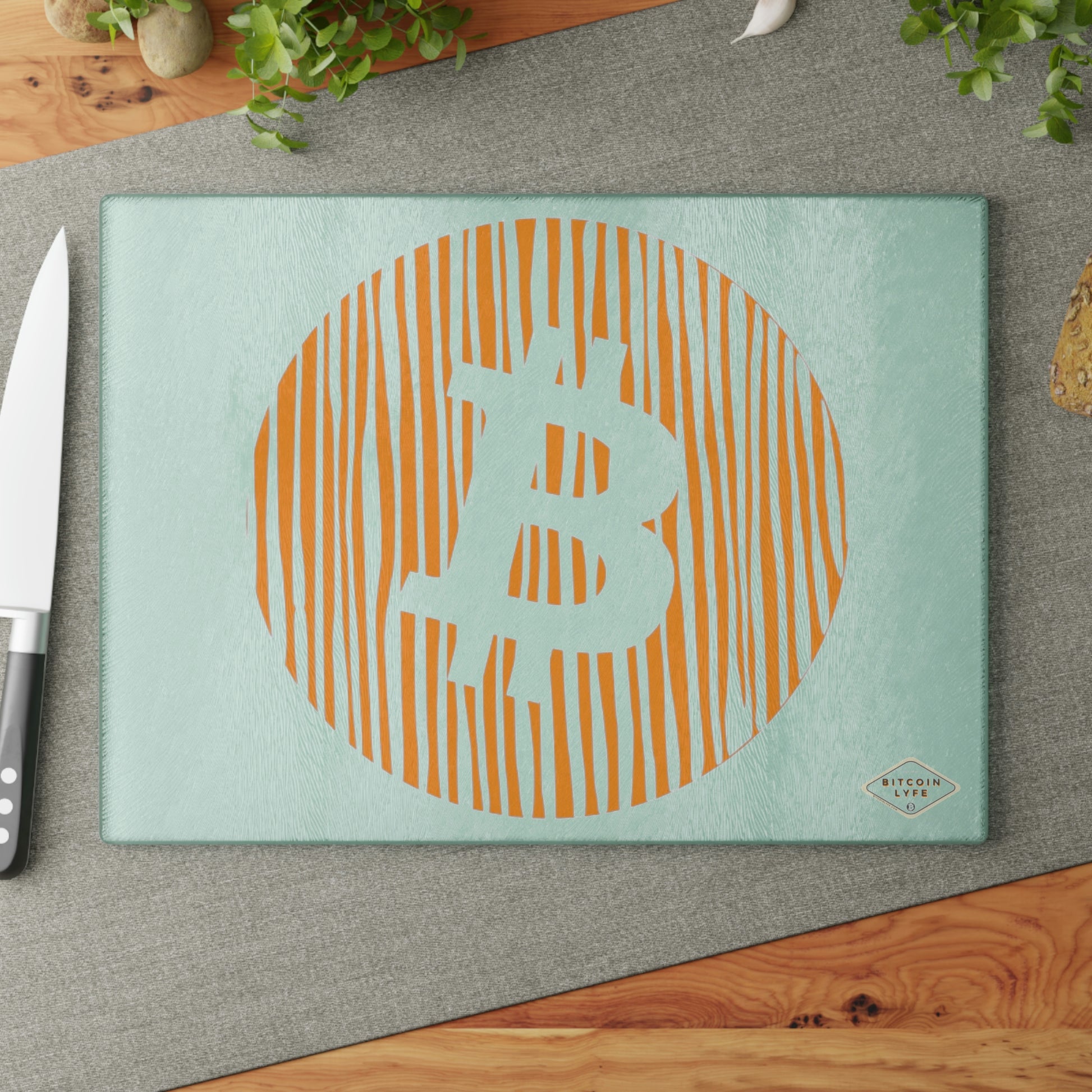 Bring a touch of character into any kitchen with this Bitcoin glass cutting board. Its tampered glass material is robust and helps prepare many a tasty meal for a long time to come. The textured surface makes it an ideal chopping, slicing, and dicing area. Available in two sizes: 8" x 11" and 11" x 15".