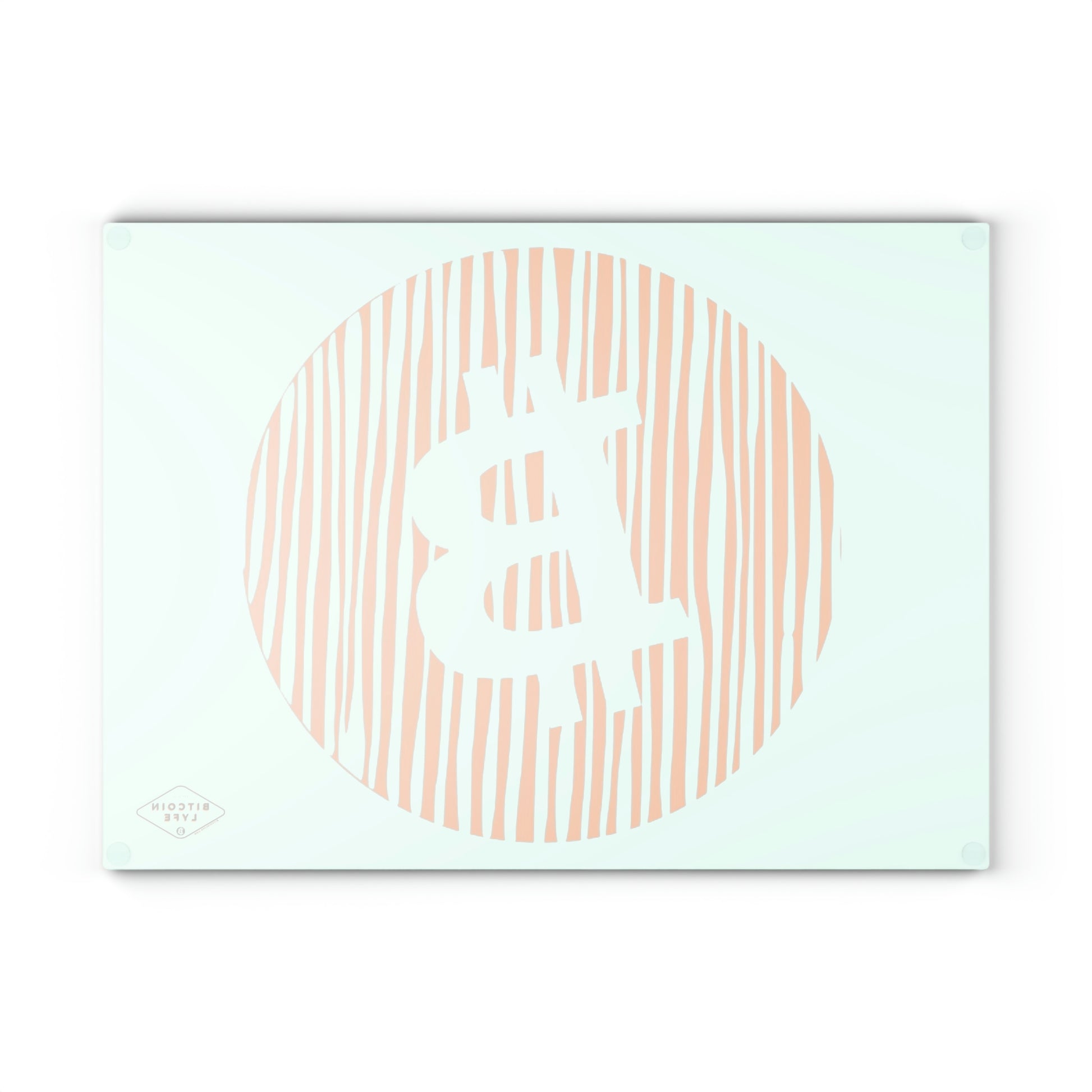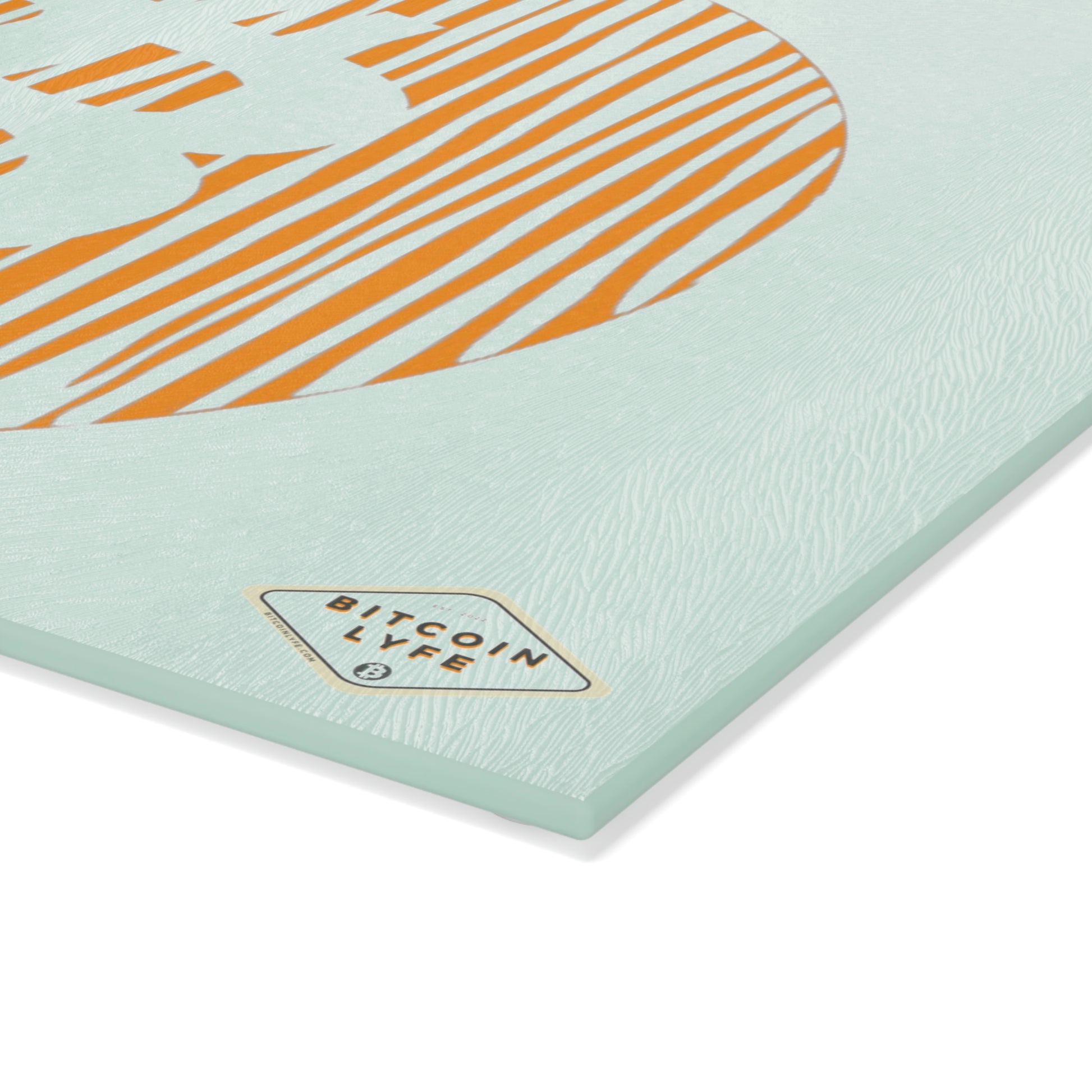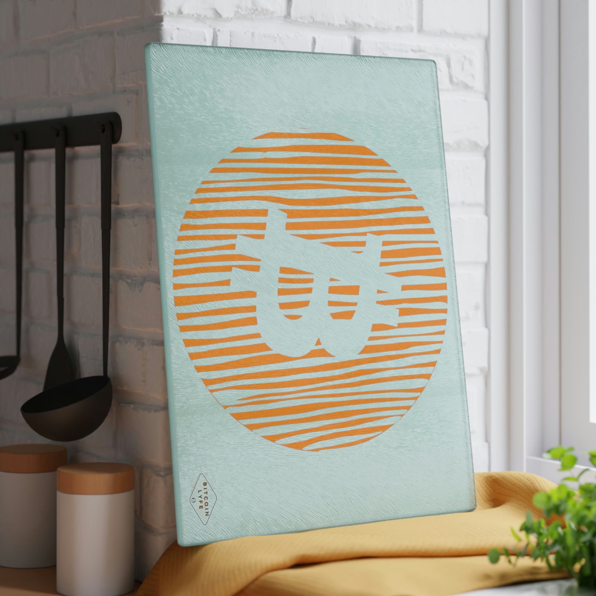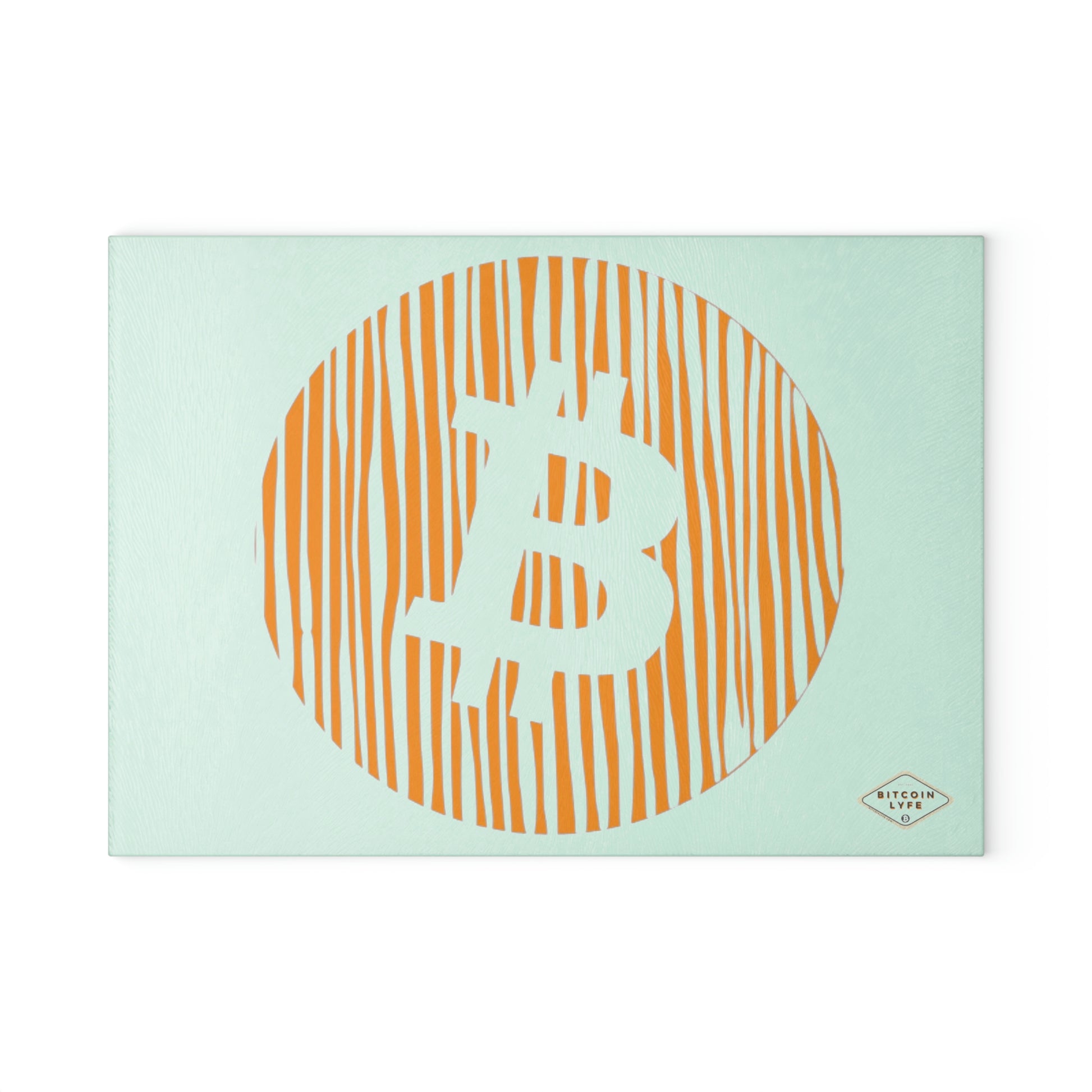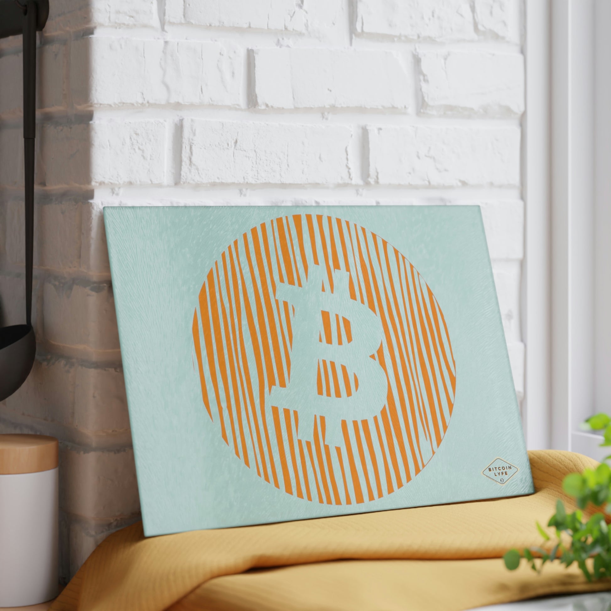 Bring a touch of character into any kitchen with this Bitcoin glass cutting board. Its tampered glass material is robust and helps prepare many a tasty meal for a long time to come. The textured surface makes it an ideal chopping, slicing, and dicing area. Available in two sizes: 8" x 11" and 11" x 15".