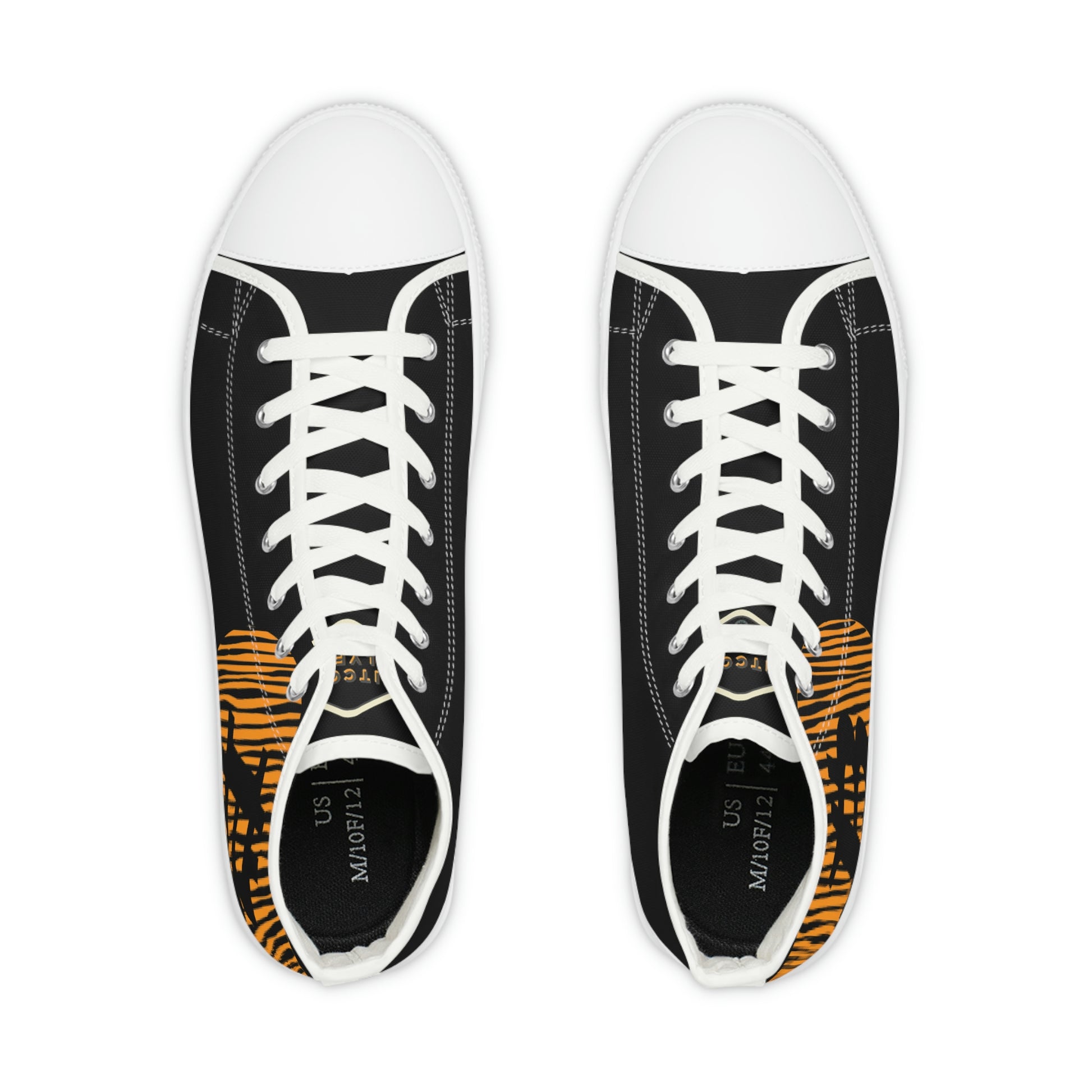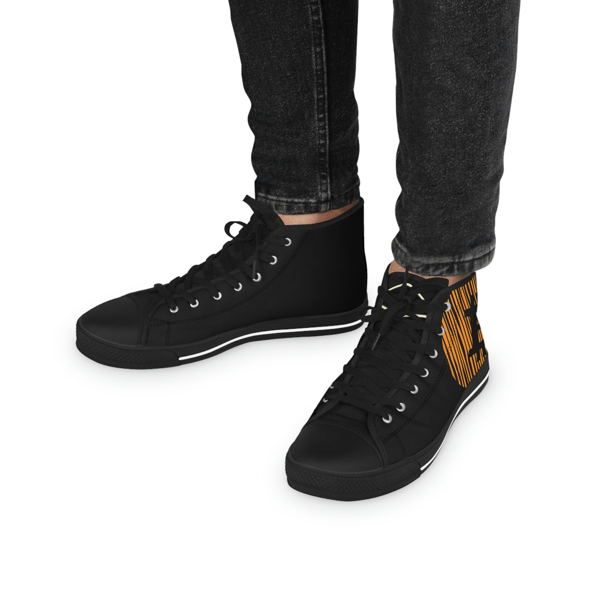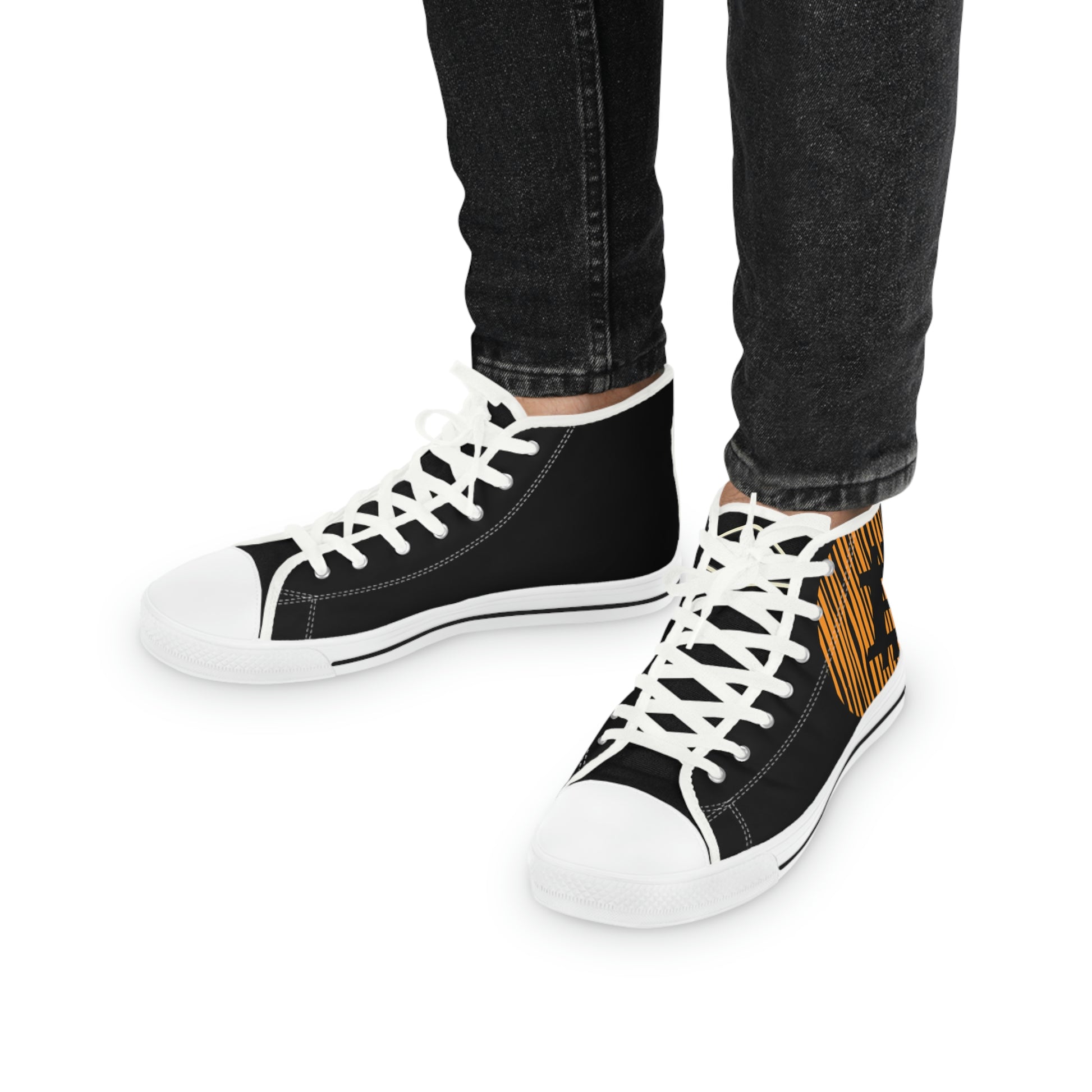 Made with breathable polyester canvas and featuring hi-poly deodorant memory foam insoles, these high top sneakers for men bear all the marks of an awesome shoe. Choose between black or white sole and laces, and enjoy the silver metal eyelets along with the lace-up closure.