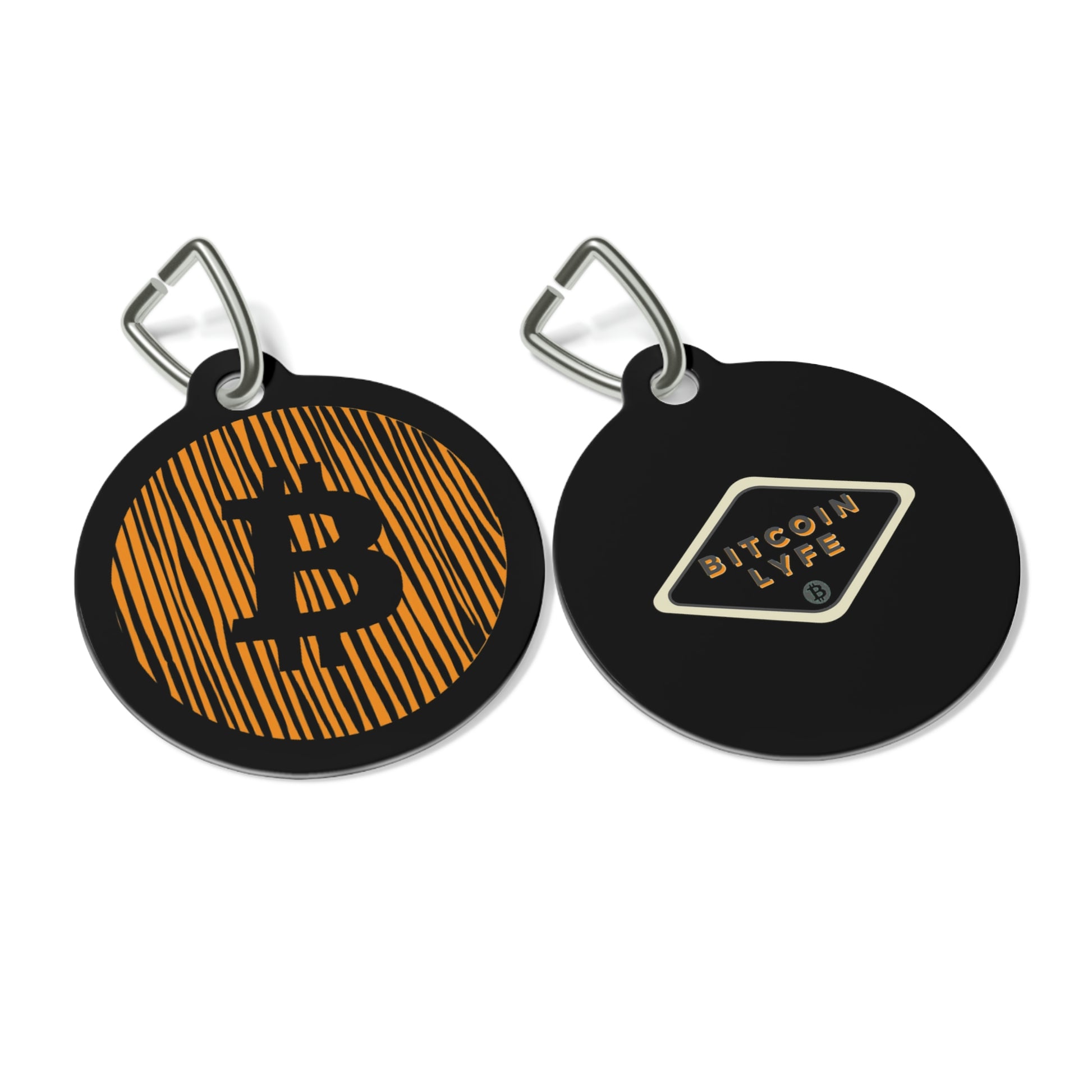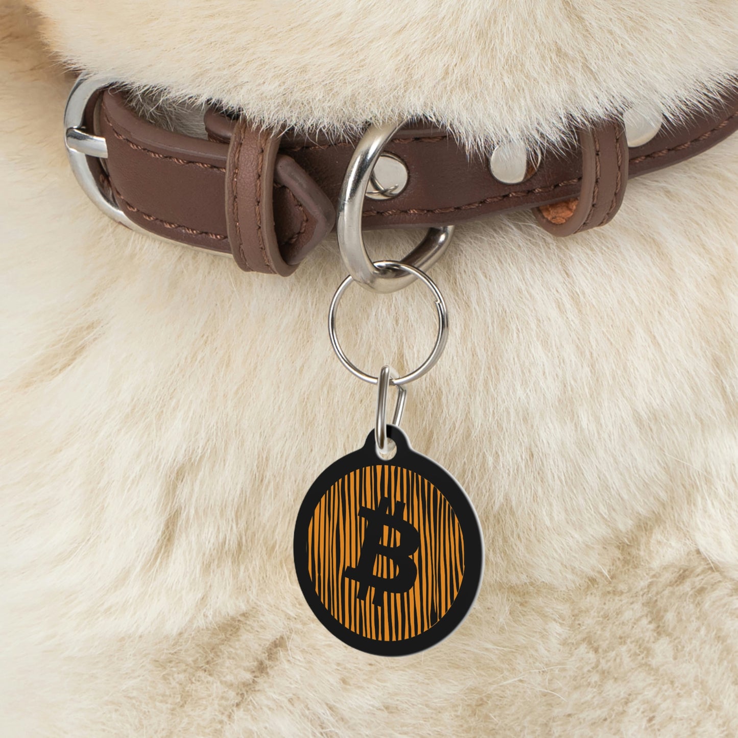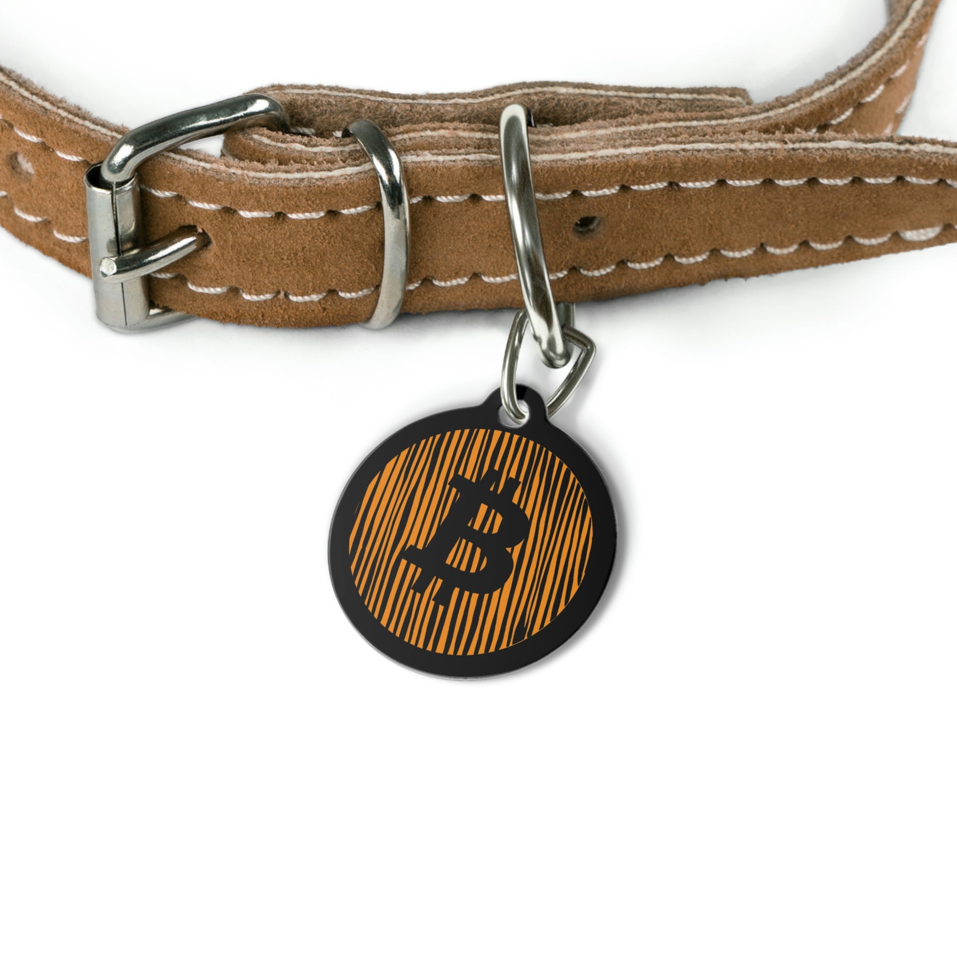 BItcoin pet tags provide a fresh way to spice up a furry friend's collar. The tag and clip are both made of metal. This increased durability comes in handy, as collar pieces can snag on brush, corners, etc.