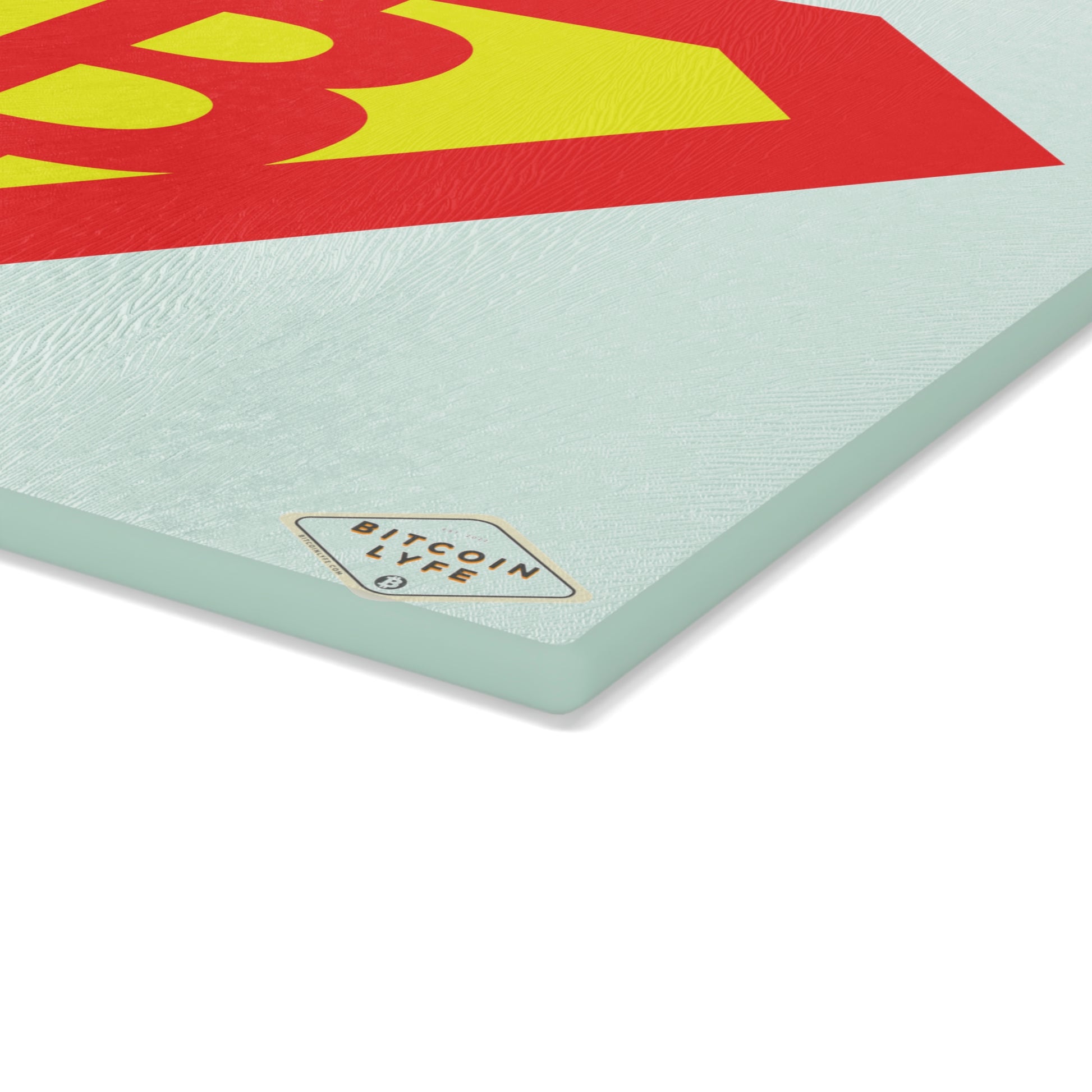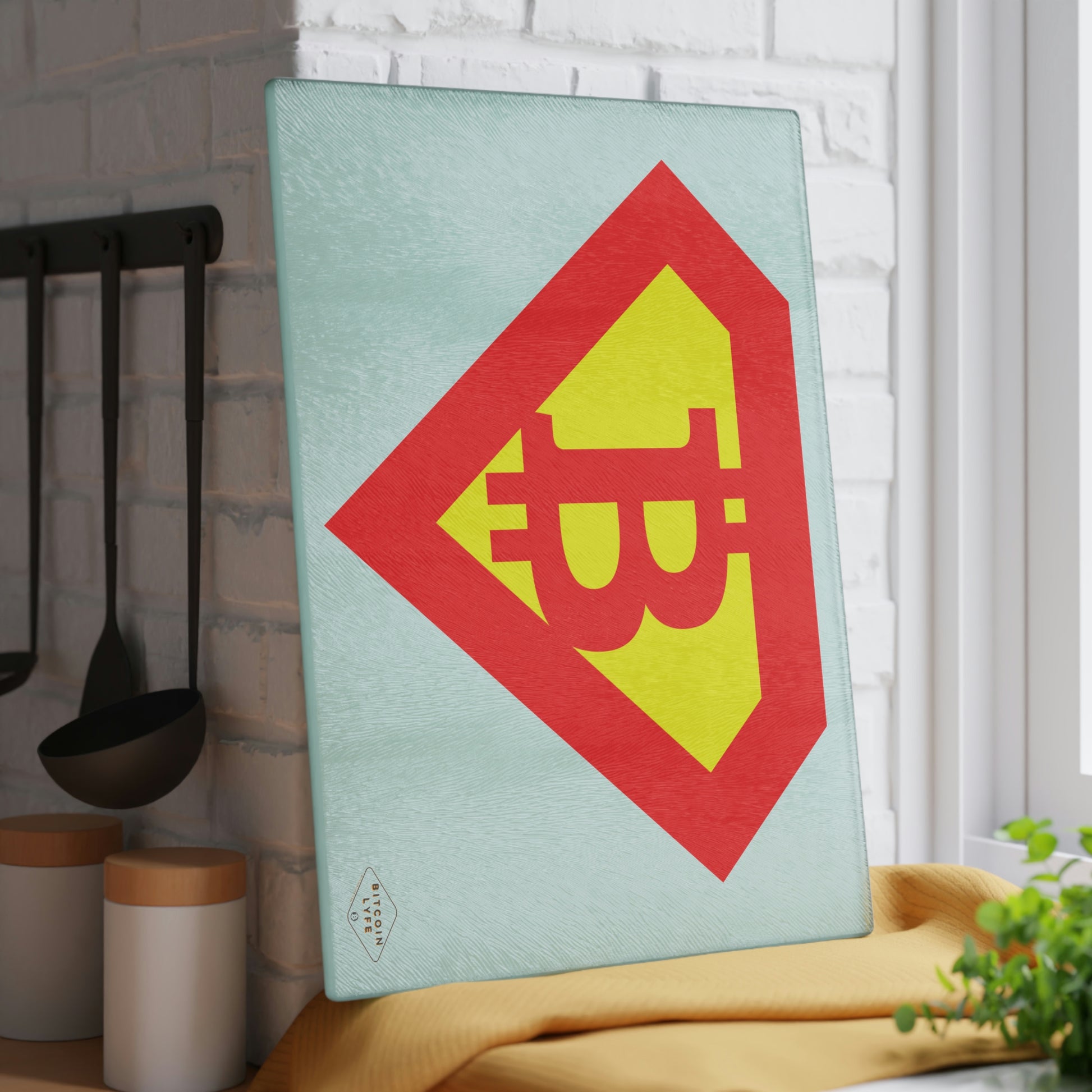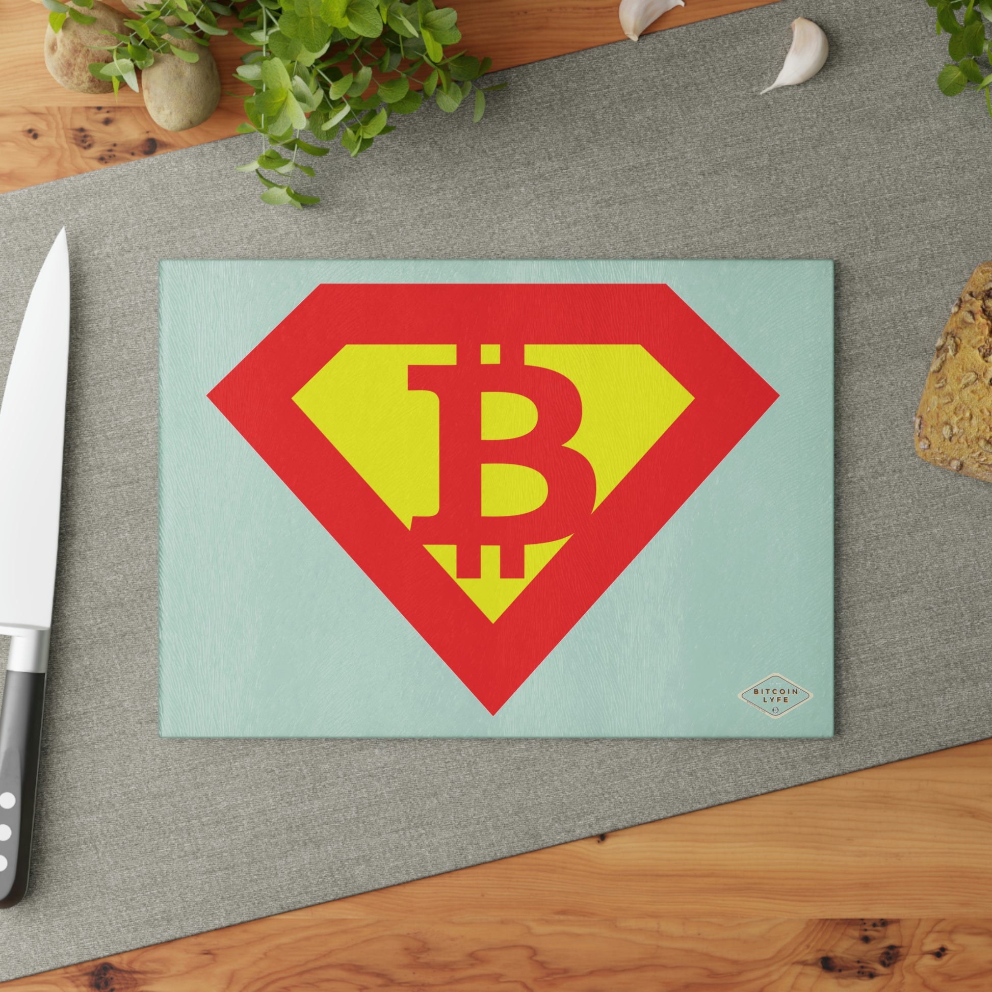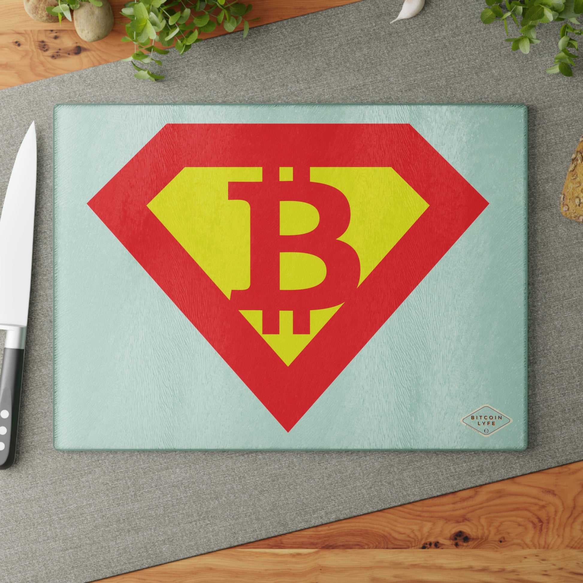 Bring a touch of character into any kitchen with this Bitcoin glass cutting board. Its tampered glass material is robust and helps prepare many a tasty meal for a long time to come. The textured surface makes it an ideal chopping, slicing, and dicing area. Available in two sizes: 8" x 11" and 11" x 15".