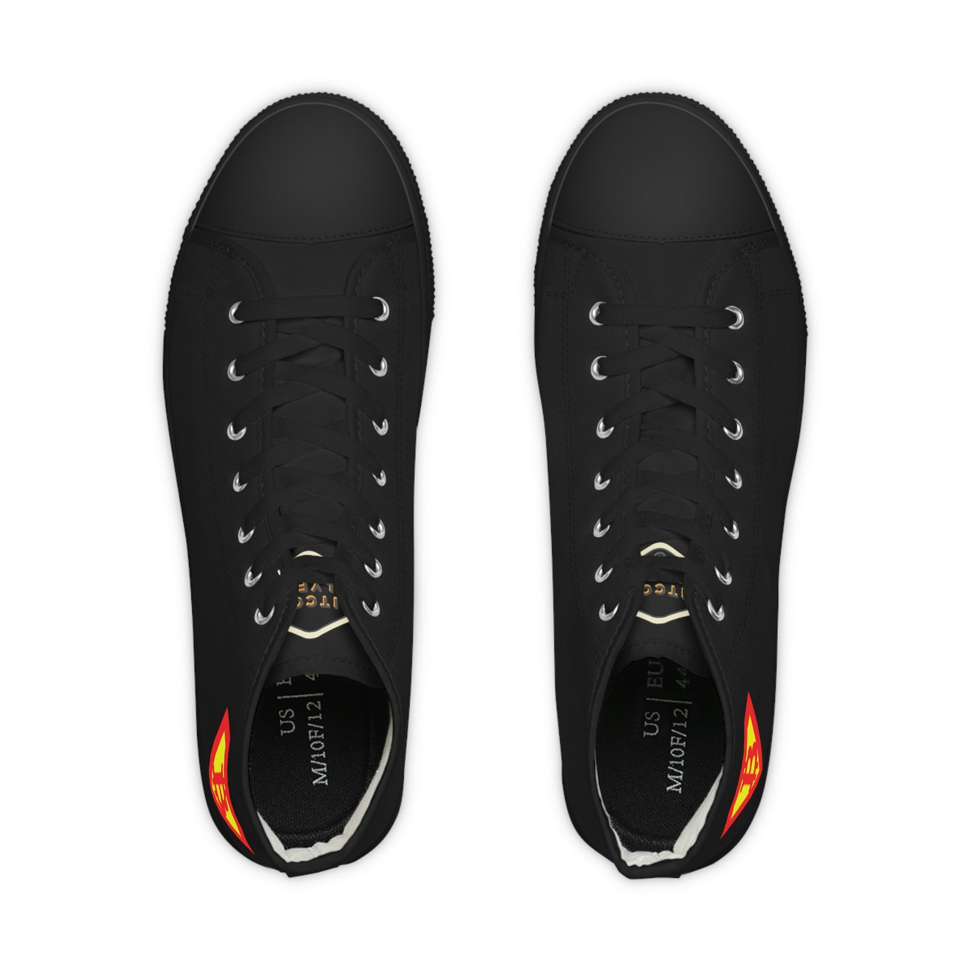 Made with breathable polyester canvas and featuring hi-poly deodorant memory foam insoles, these high top sneakers for men bear all the marks of an awesome shoe. Choose between black or white sole and laces, and enjoy the silver metal eyelets along with the lace-up closure.