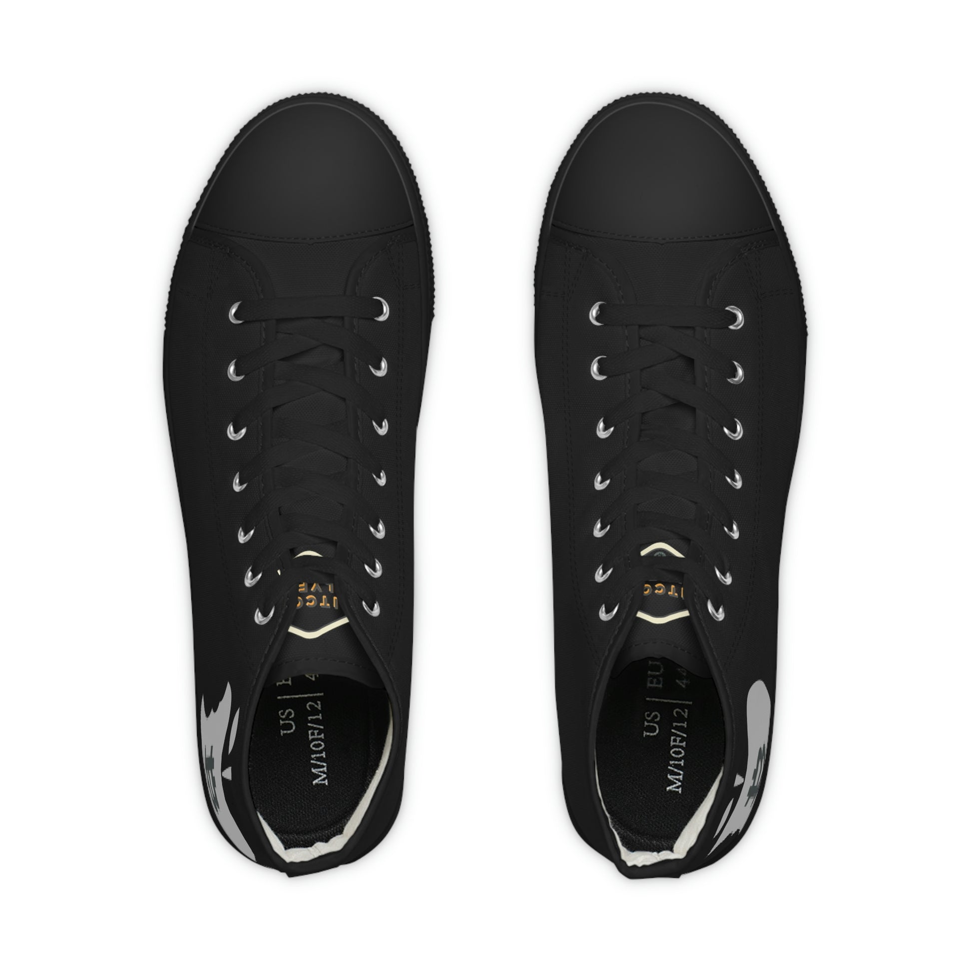Made with breathable polyester canvas and featuring hi-poly deodorant memory foam insoles, these high top sneakers for men bear all the marks of an awesome shoe. Choose between black or white sole and laces, and enjoy the silver metal eyelets along with the lace-up closure.
