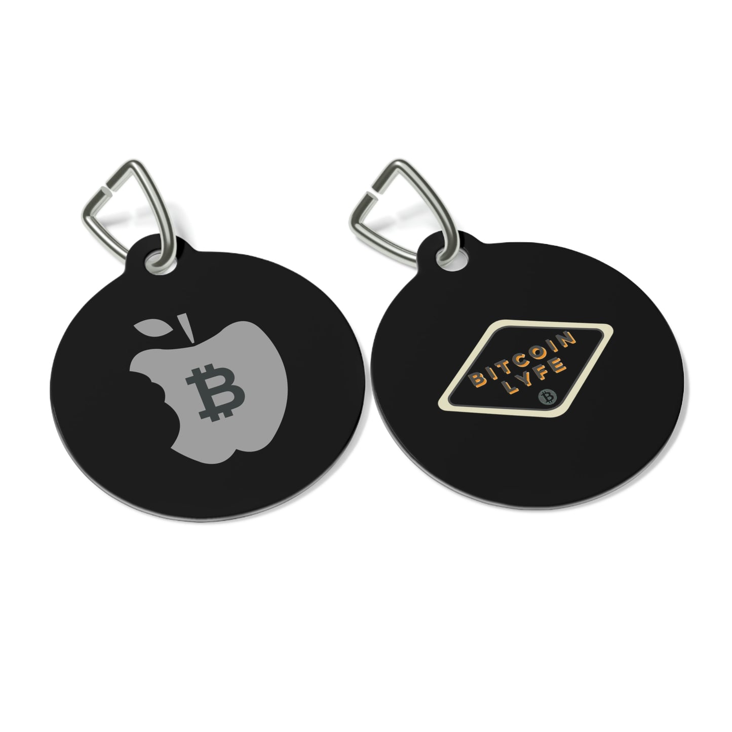 BItcoin pet tags provide a fresh way to spice up a furry friend's collar. The tag and clip are both made of metal. This increased durability comes in handy, as collar pieces can snag on brush, corners, etc.