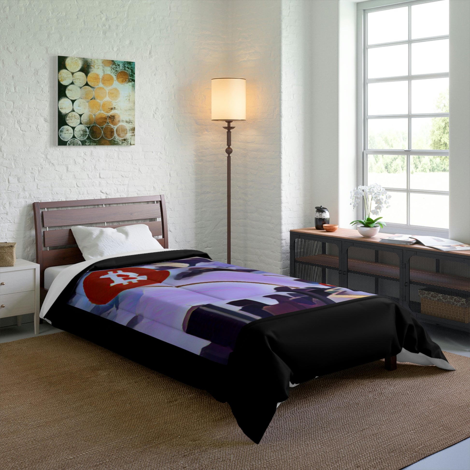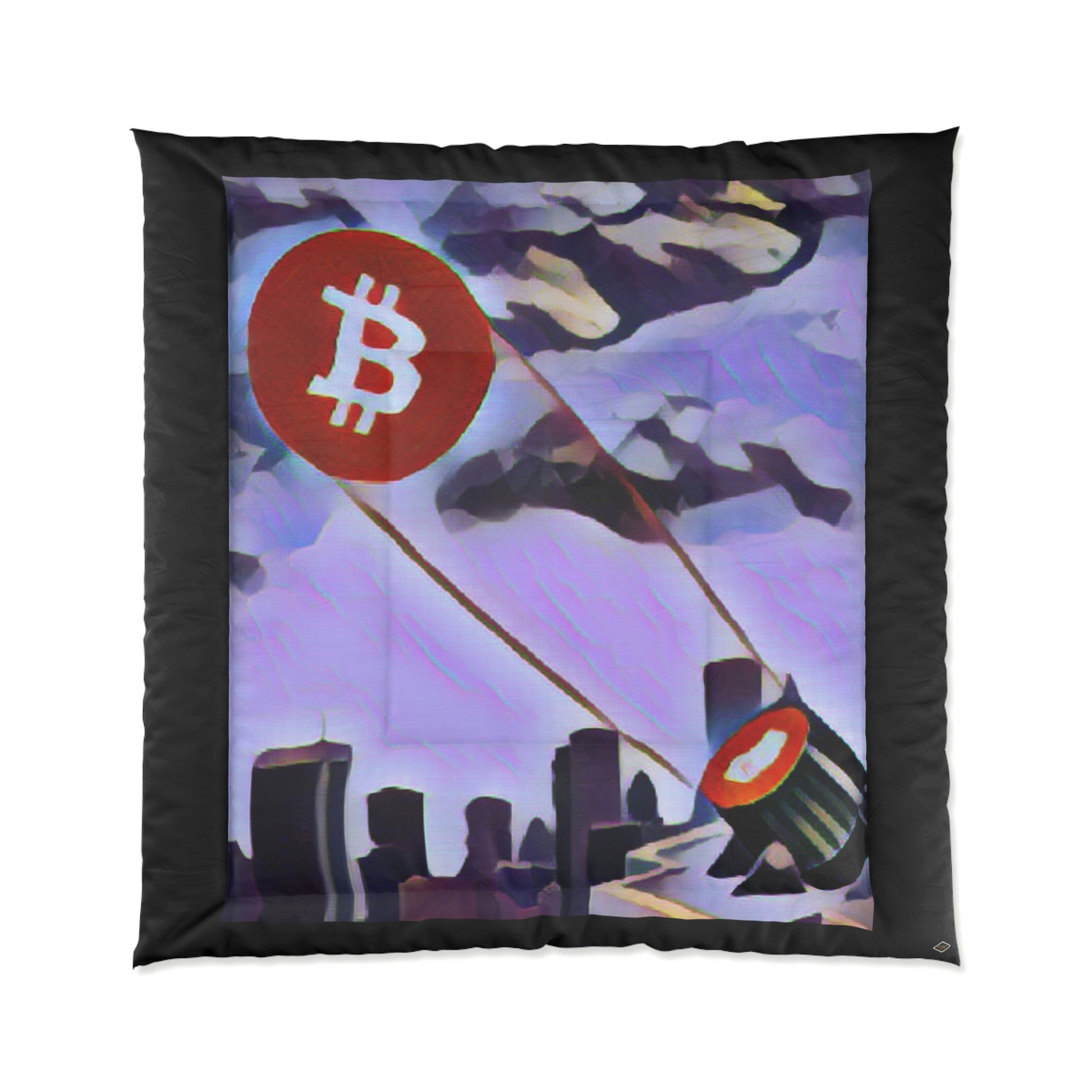 Comfy, fluffy, and warm. Cozy up underneath our snug comforter for a deep and relaxing sleep. This Bitcoin comforter is the perfect solution for cold days in bed with coffee, waiting for the morning light to peak through the window and wake up the house.