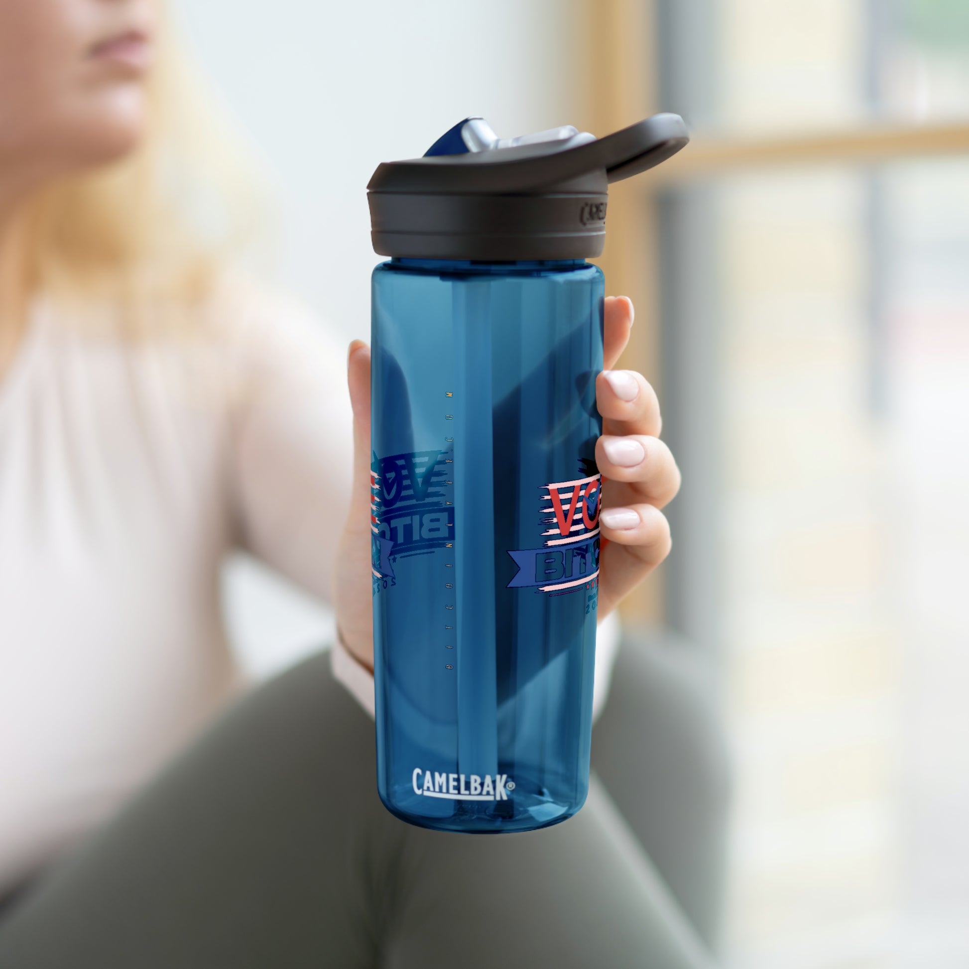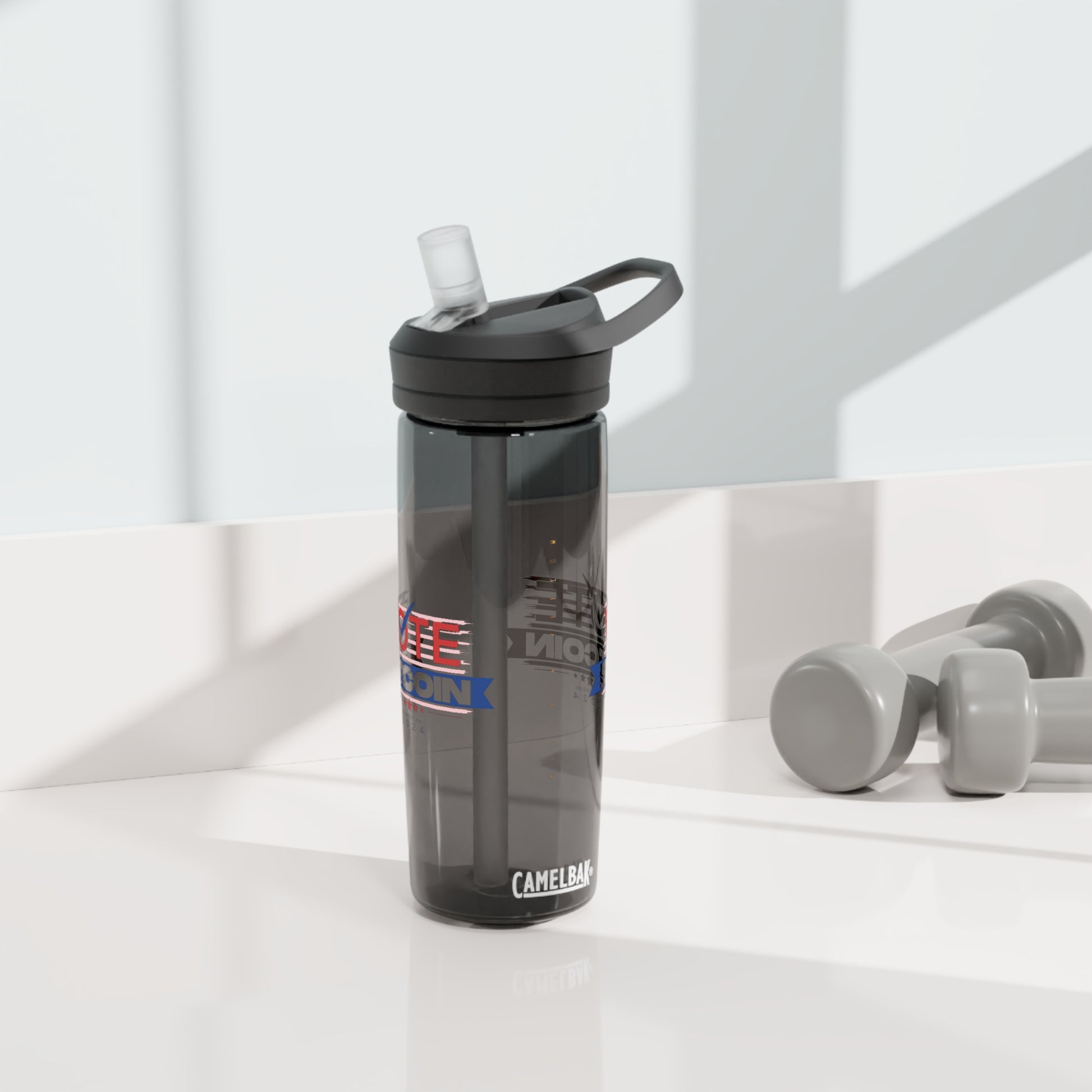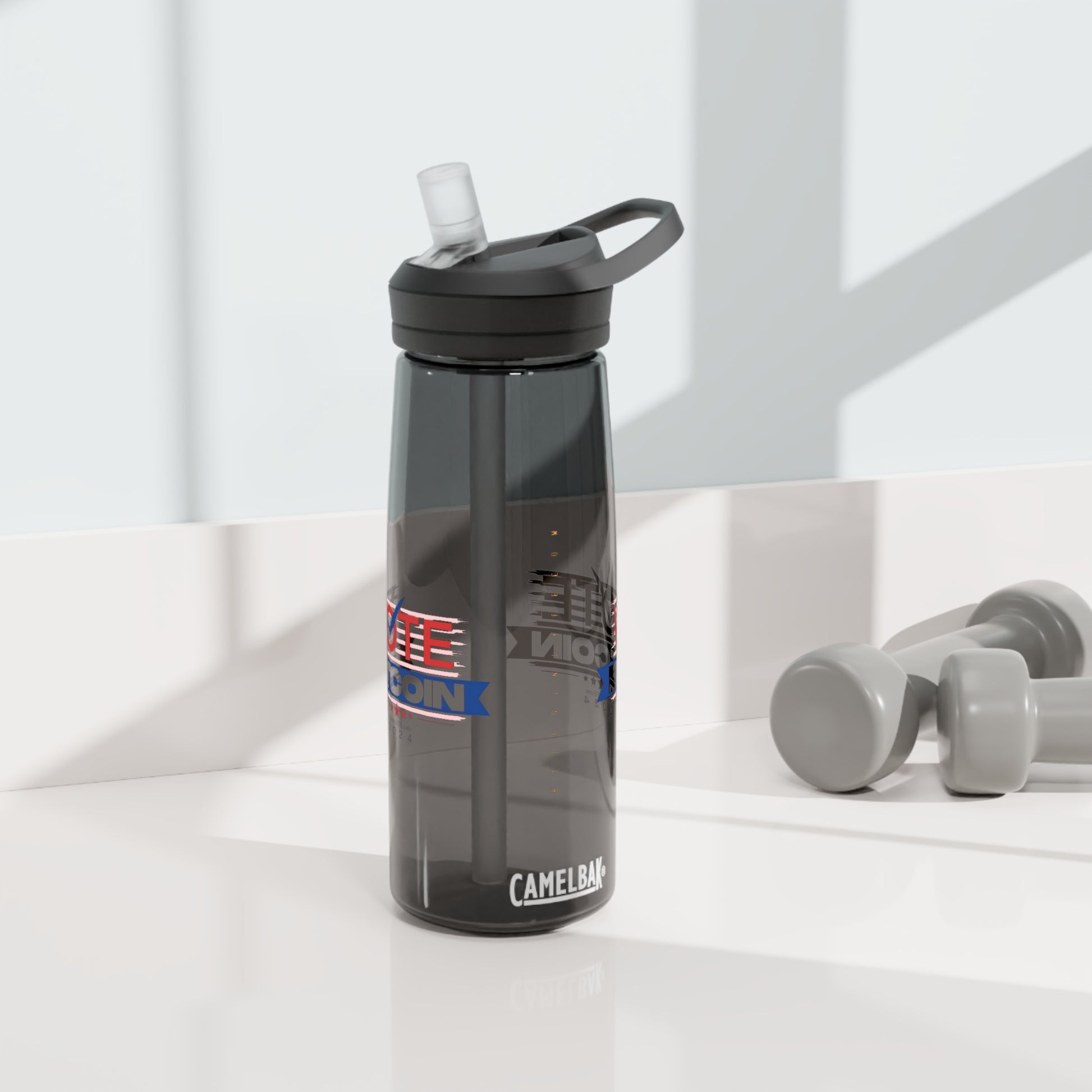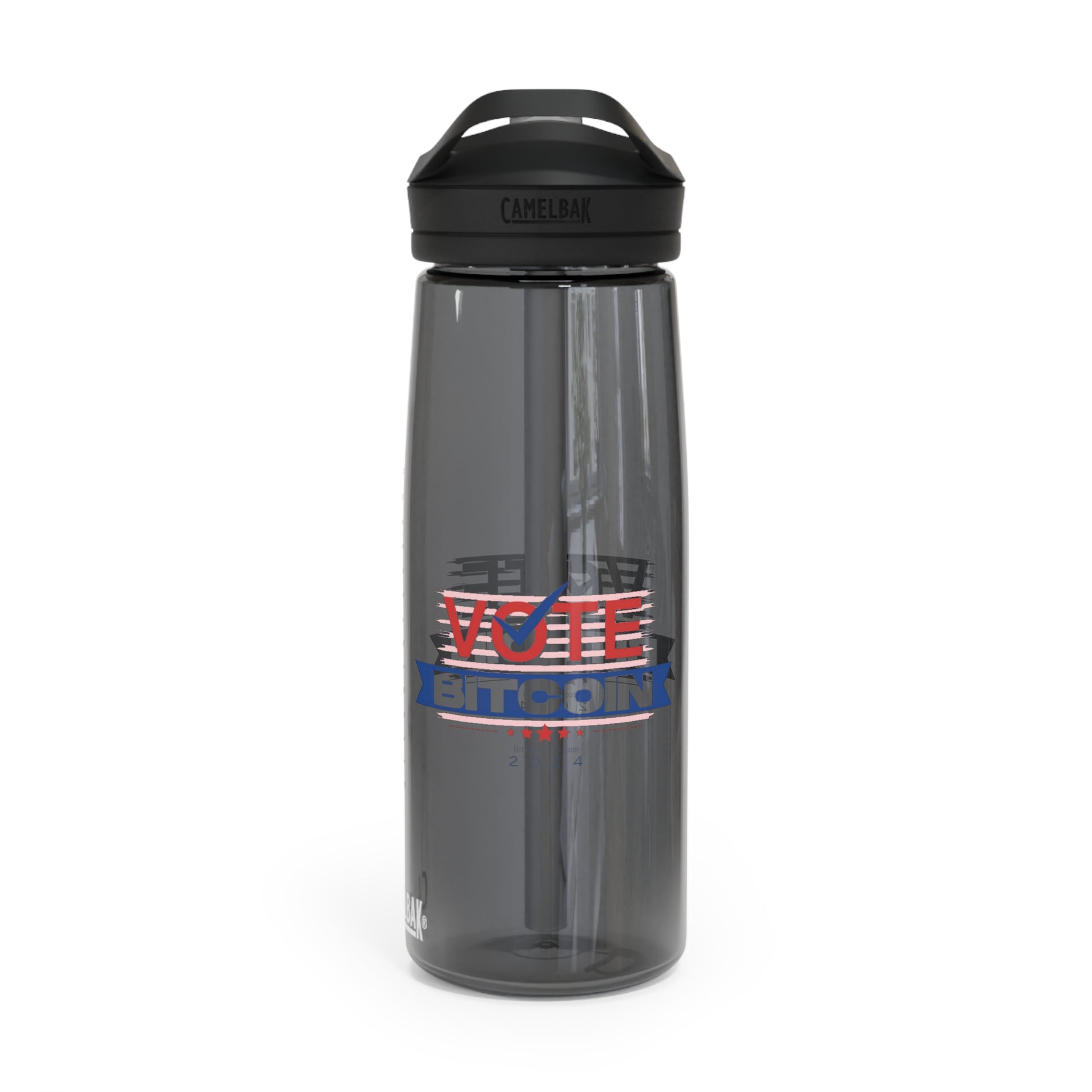 Stay hydrated anywhere you go with your vote for Bitcoin CamelBak Eddy® water bottle. This water bottle is made with robust Tritan™ material that offers top-tier shatter, stain, and odor resistance. This reusable water bottle is BPA-Free and its screw-on lid along with the spill-proof biting valve make for an effortless, mess-free drinking experience. Available in 20 and 25oz variations.