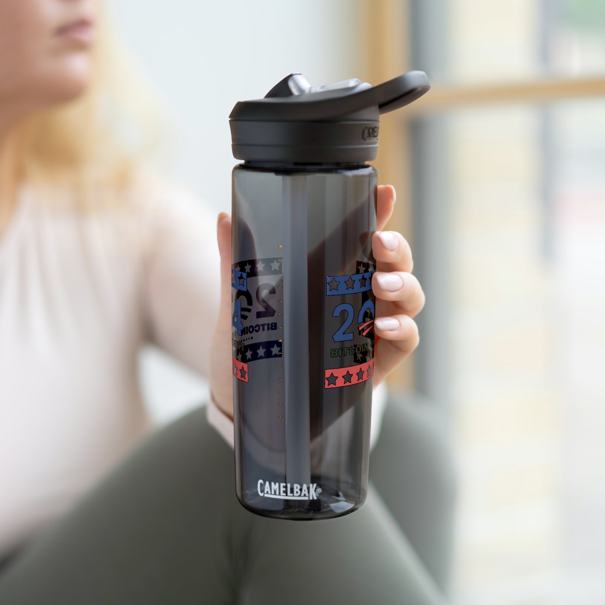 Stay hydrated anywhere you go with your vote for Bitcoin CamelBak Eddy® water bottle. This water bottle is made with robust Tritan™ material that offers top-tier shatter, stain, and odor resistance. This reusable water bottle is BPA-Free and its screw-on lid along with the spill-proof biting valve make for an effortless, mess-free drinking experience. Available in 20 and 25oz variations.