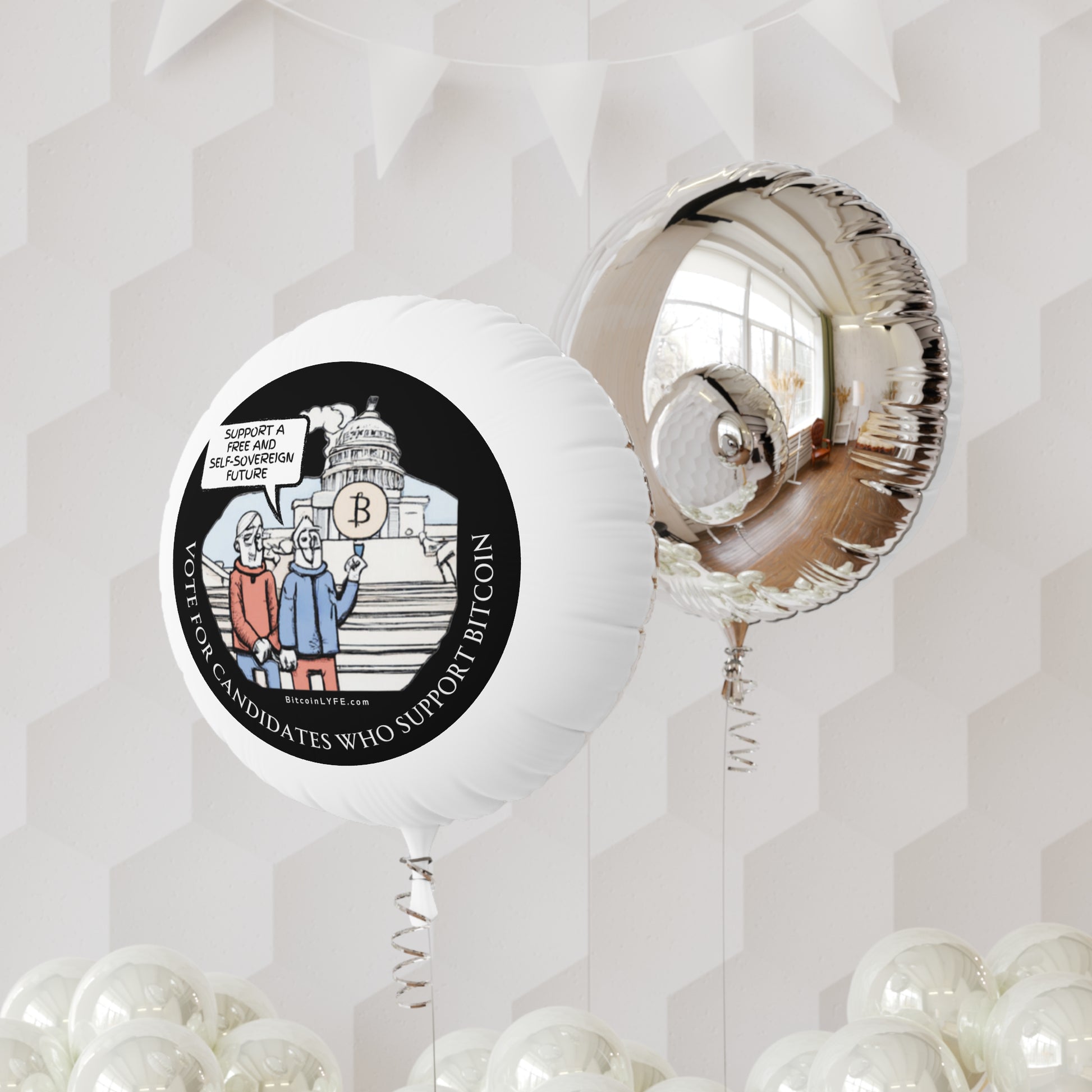 Make special events feel even more personal with Bitcoin voting balloons. Make no mistake...Bitcoin is on the ballot! Show off your conviction in Bitcoin and help spread voter awareness about the importance to choose candidates that recognize the importance of Bitcoin.