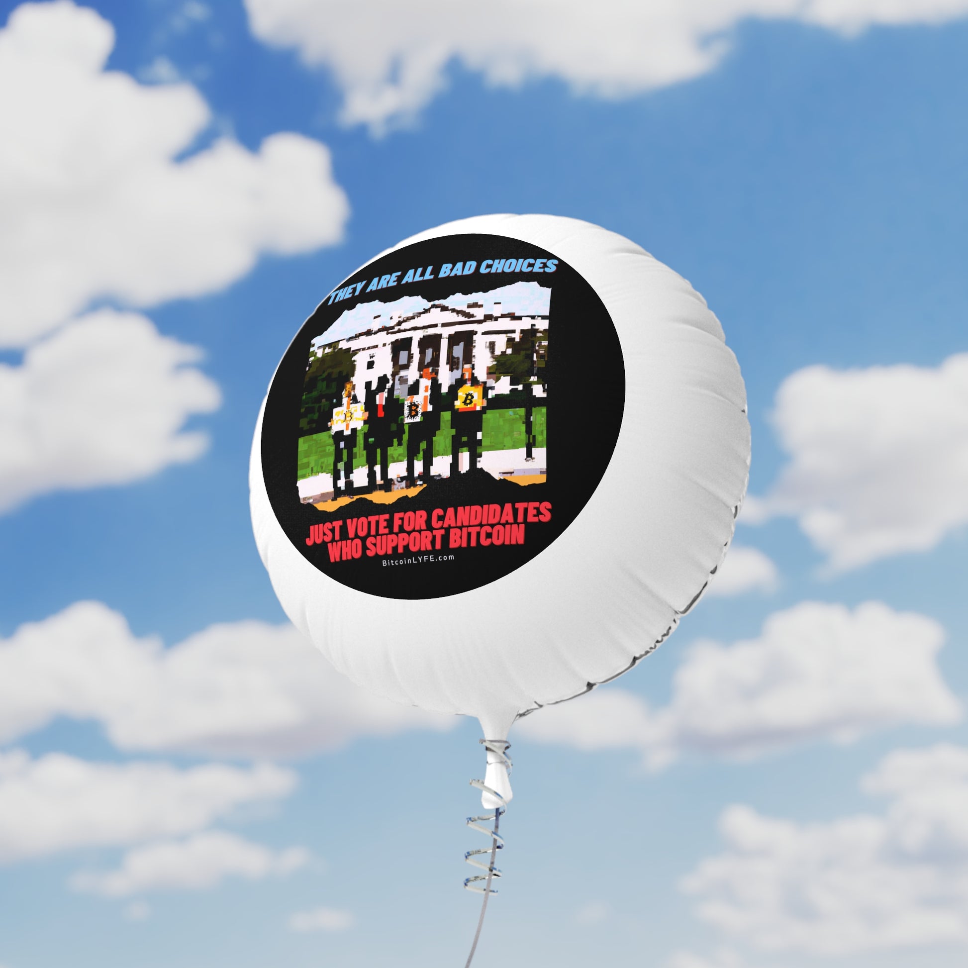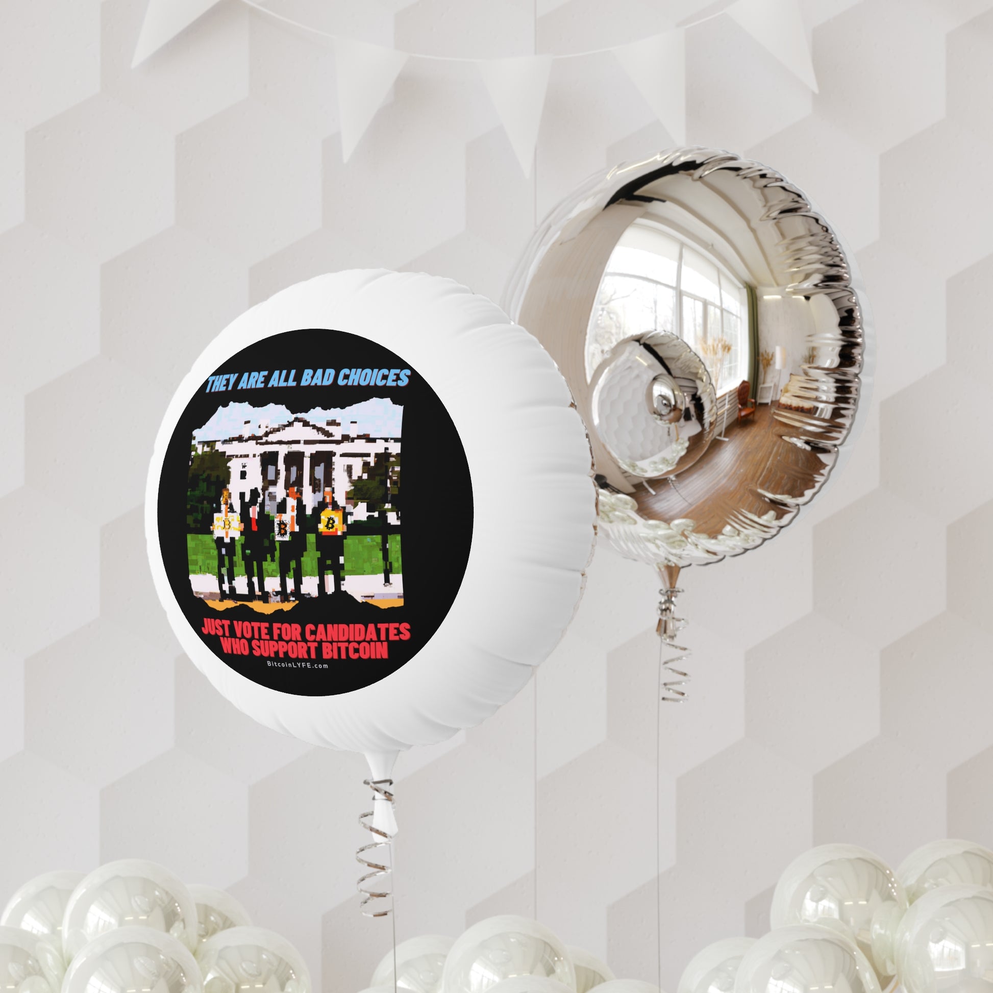 Make special events feel even more personal with Bitcoin voting balloons. Make no mistake...Bitcoin is on the ballot! Show off your conviction in Bitcoin and help spread voter awareness about the importance to choose candidates that recognize the importance of Bitcoin.