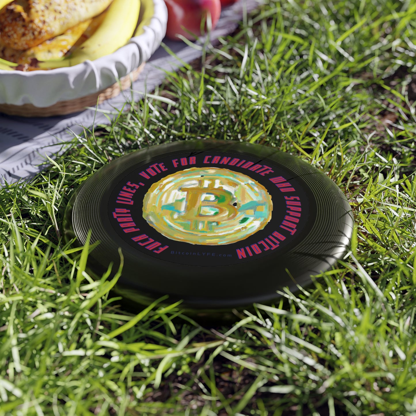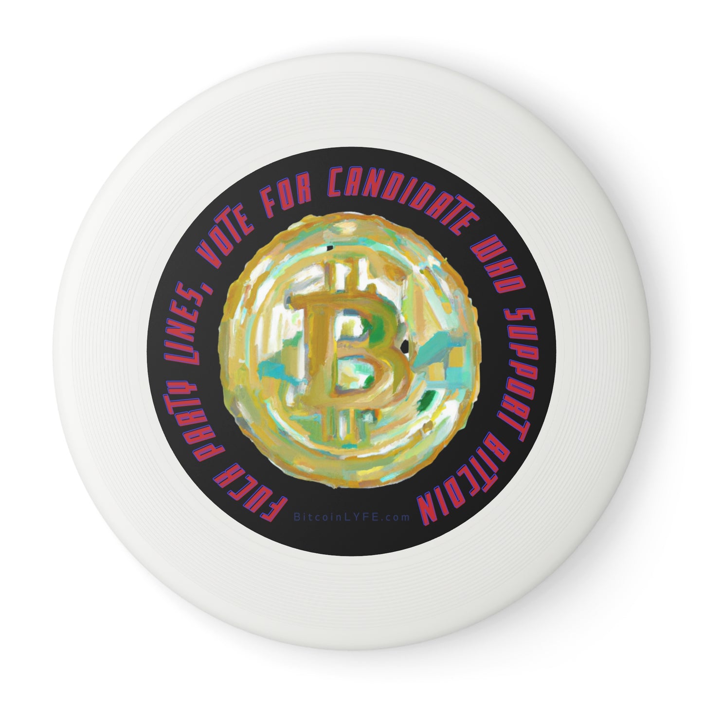 The iconic Wham-O frisbee is here and it carries a generational Bitcoin message. Make no mistake...Bitcoin is on the ballot! Show off your conviction in Bitcoin and help spread voter awareness about the importance to choose candidates that recognize the importance of Bitcoin.